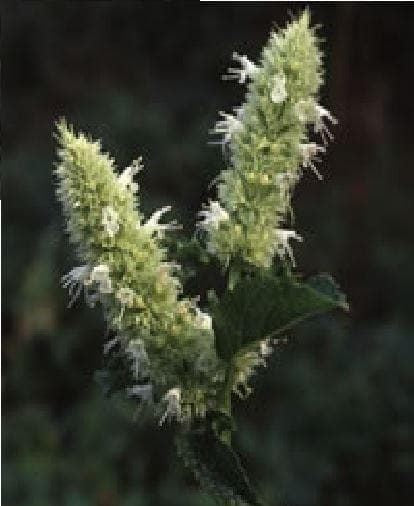 Stubby spikes of white flowers are held on stout stems of fragrant leaves, which are magnets for bees and butterflies. This plant is very hardy in a well-drained spot and makes a fabulous sight in a dark, dry corner.