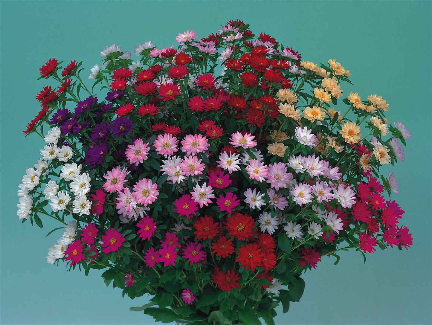 This is a popular mix that is also used for cut flowers. It produces masses of semi-double flowers as a spray on a single stem. The flowers are in various colours with a yellow centre. They are half hardy annuals, flowering from August onwards.