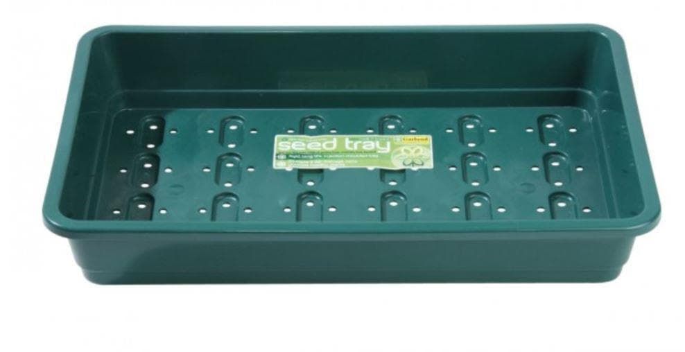 HEAVY DUTY GREEN PLASTIC SEED TRAYS WITH HOLES - FULL SIZE