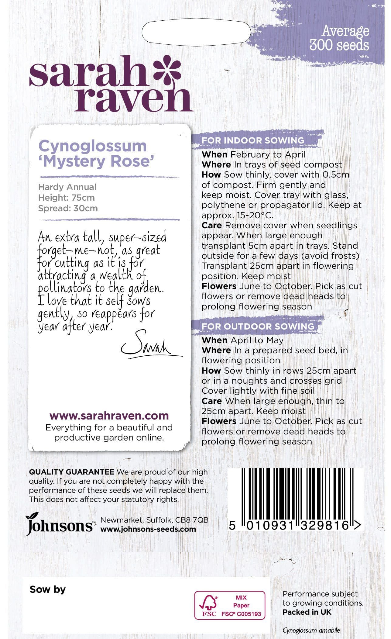 Johnson Seeds - Sarah Raven Flower - Cynoglossum Mystery Rose -