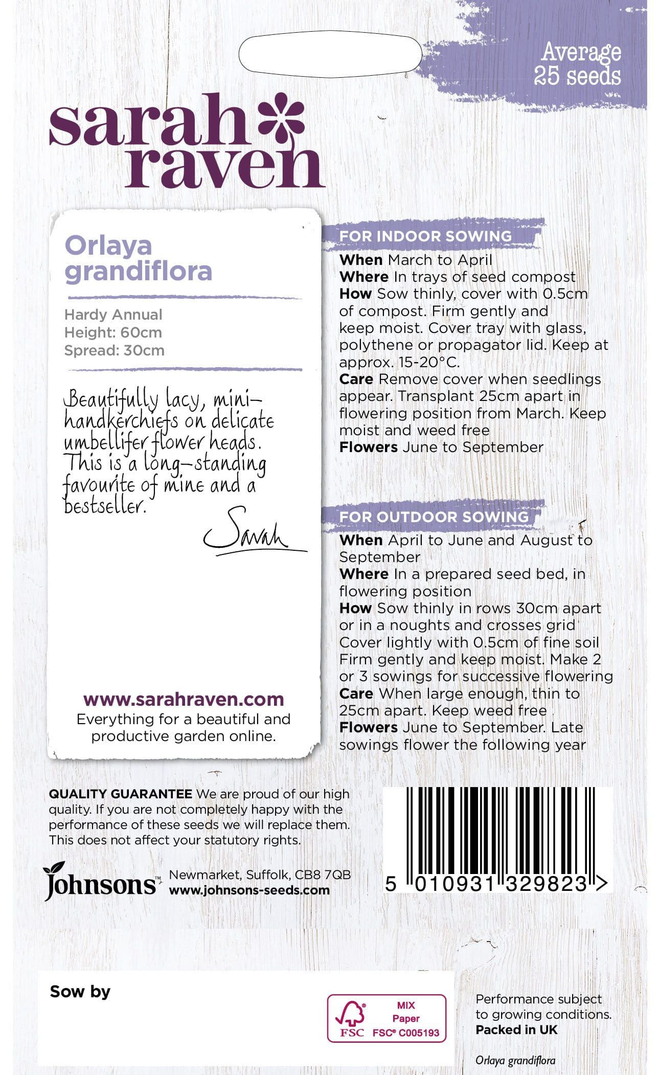 Johnson Seeds - Sarah Raven Flower - Orlaya Grandiflora - 25 Seeds