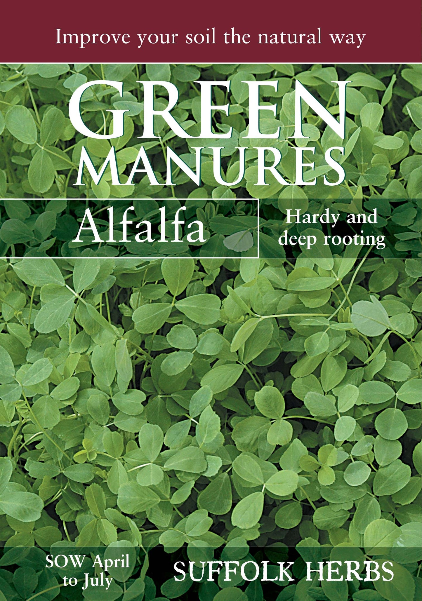 Alfalfa grows tall and strong and is a deep-rooted nitrogen fixer. It is good for a complete season; spring to autumn, or summer to spring.