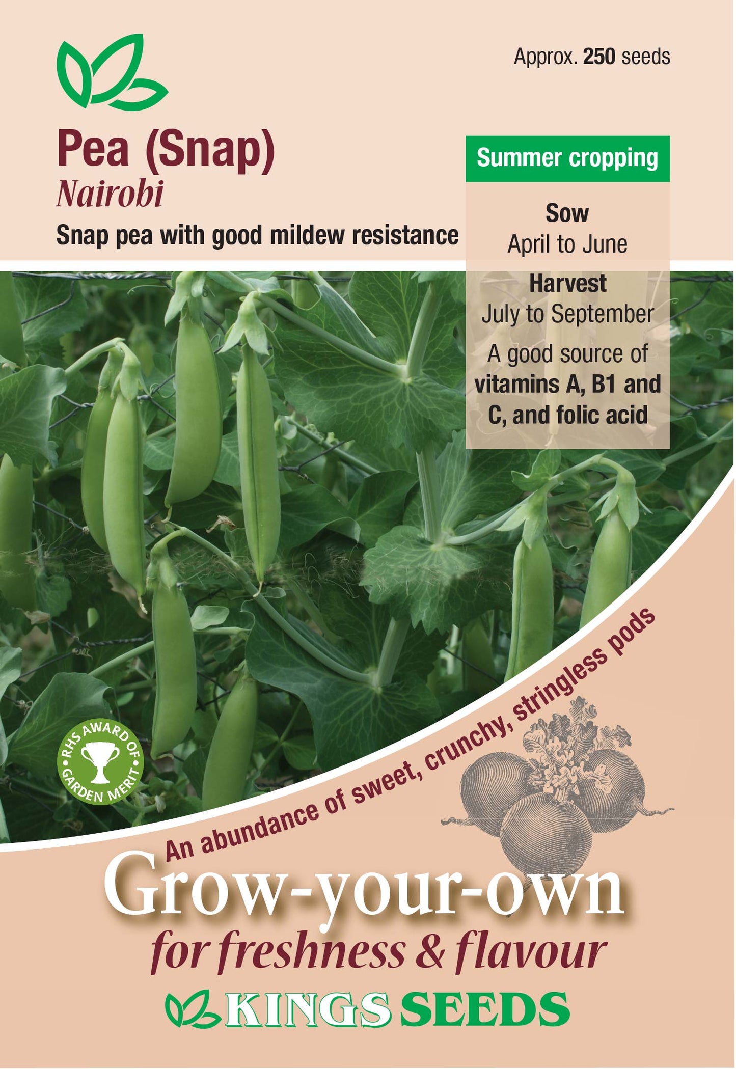 Kings Seeds Pea (Snap) Nairobi 250 Seeds