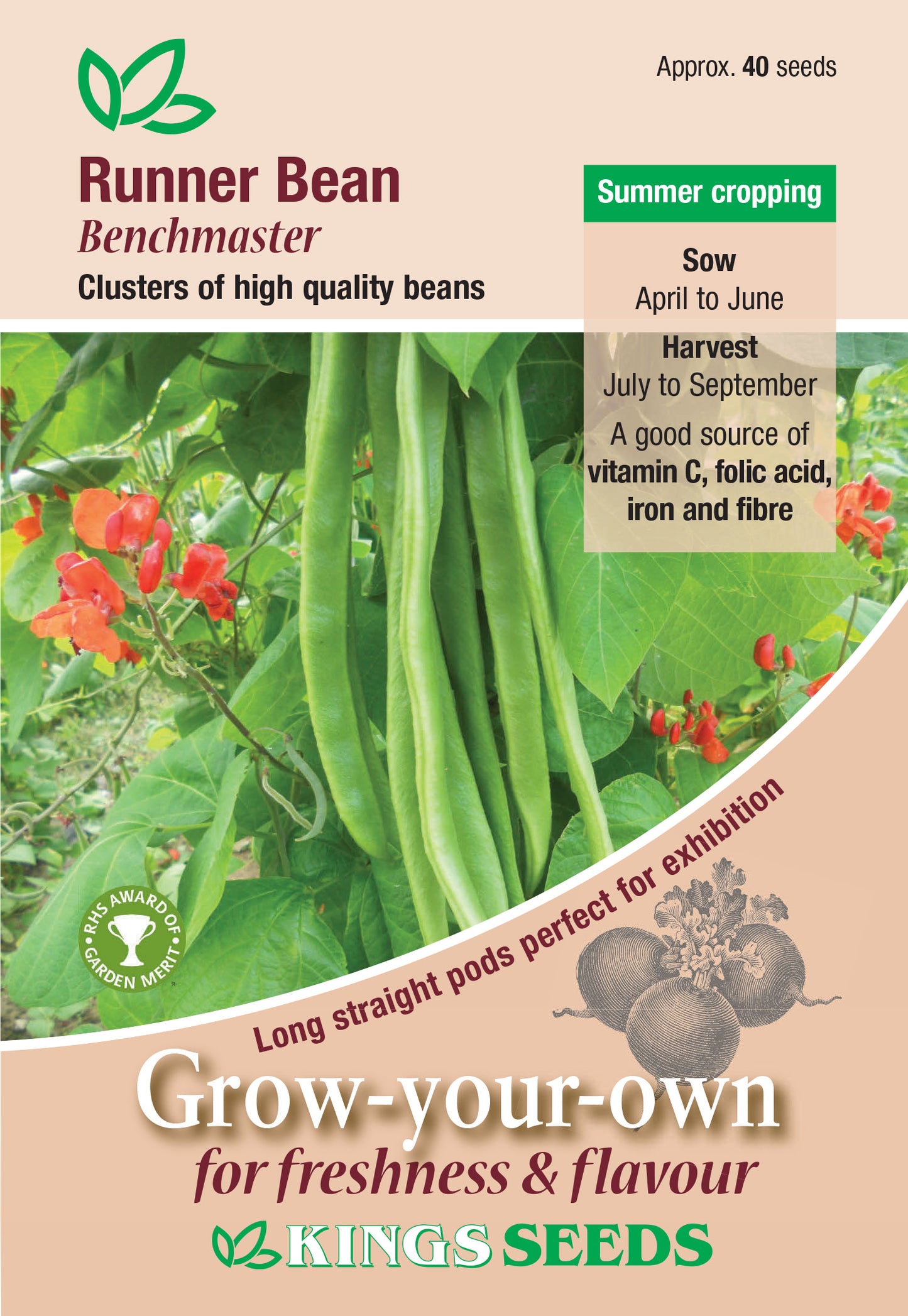 Kings Seeds Runner Bean Benchmaster 40 Seeds